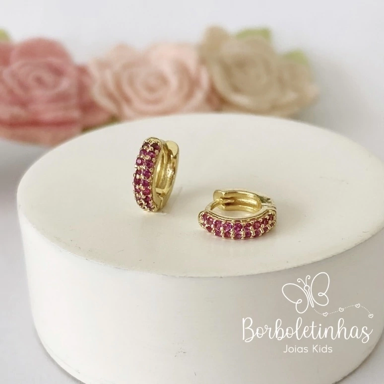 Brinco Argola Infantil Cravejado em Zircônias – O brilho que sua princesa merece!
