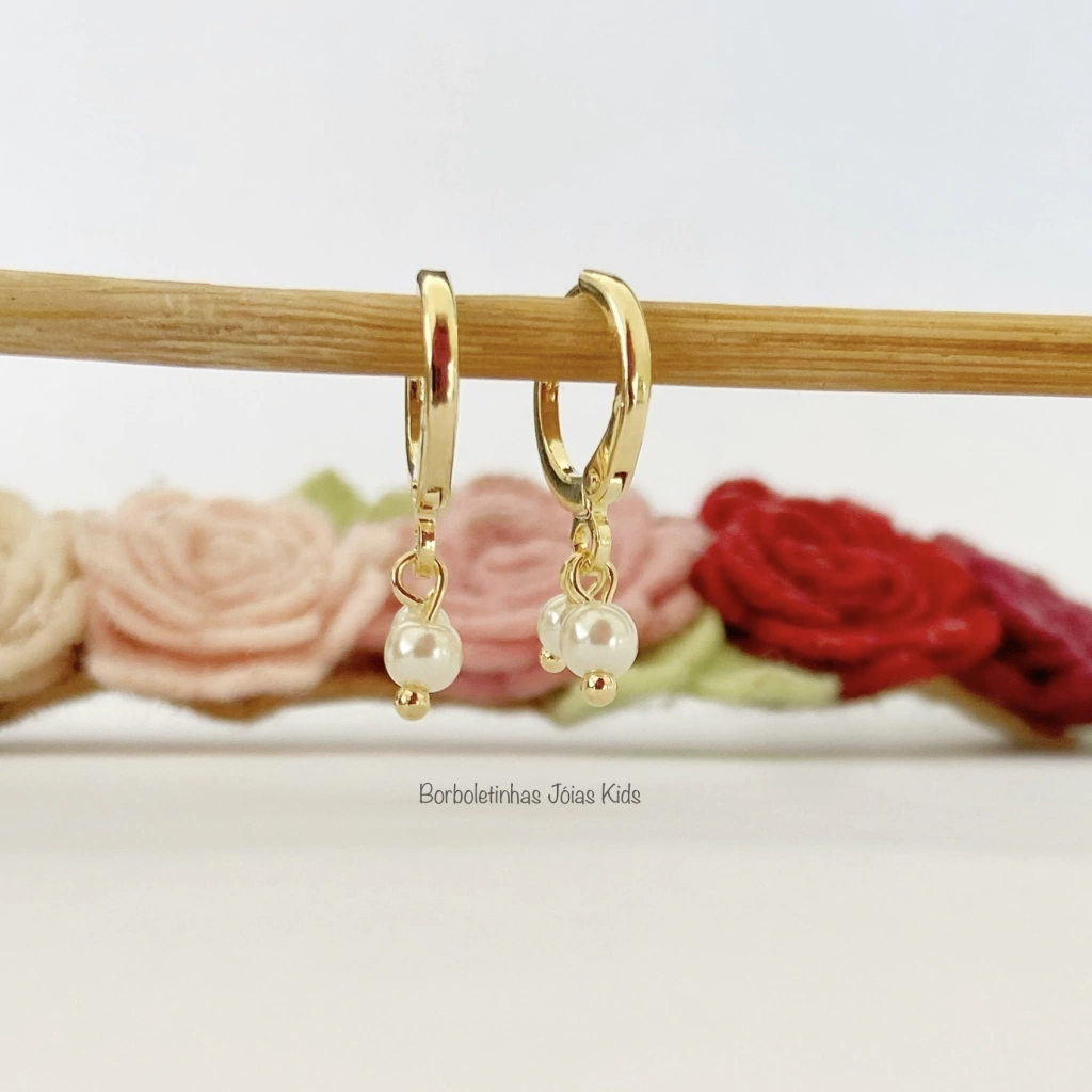 Brinco Argolinha Infantil Duas Pérolas – Encanto e delicadeza para sua princesa