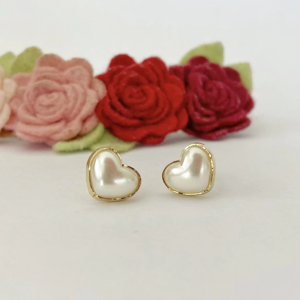 - Design: Pérola delicada em formato de coração com bordas douradas que realçam sua beleza