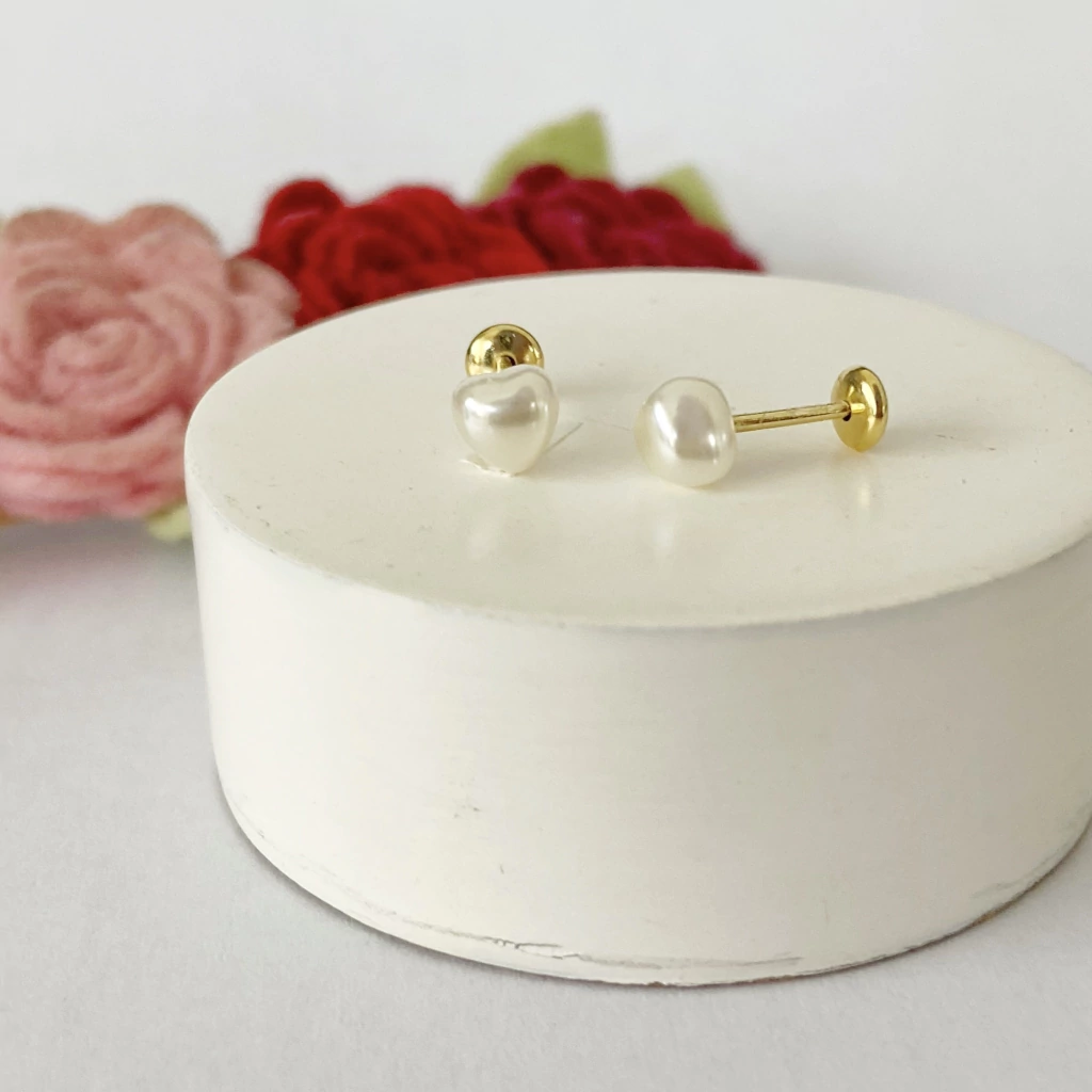 Encante a sua pequena com o Brinco de Pérola em Formato de Coração Banhado a Ouro, a semijoia perfeita para princesas que adoram brilhar com estilo e delicadeza!