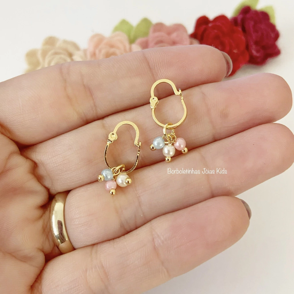 Com três pérolas coloridas penduradas, este brinco é perfeito para adicionar um toque de alegria ao visual da sua pequena.