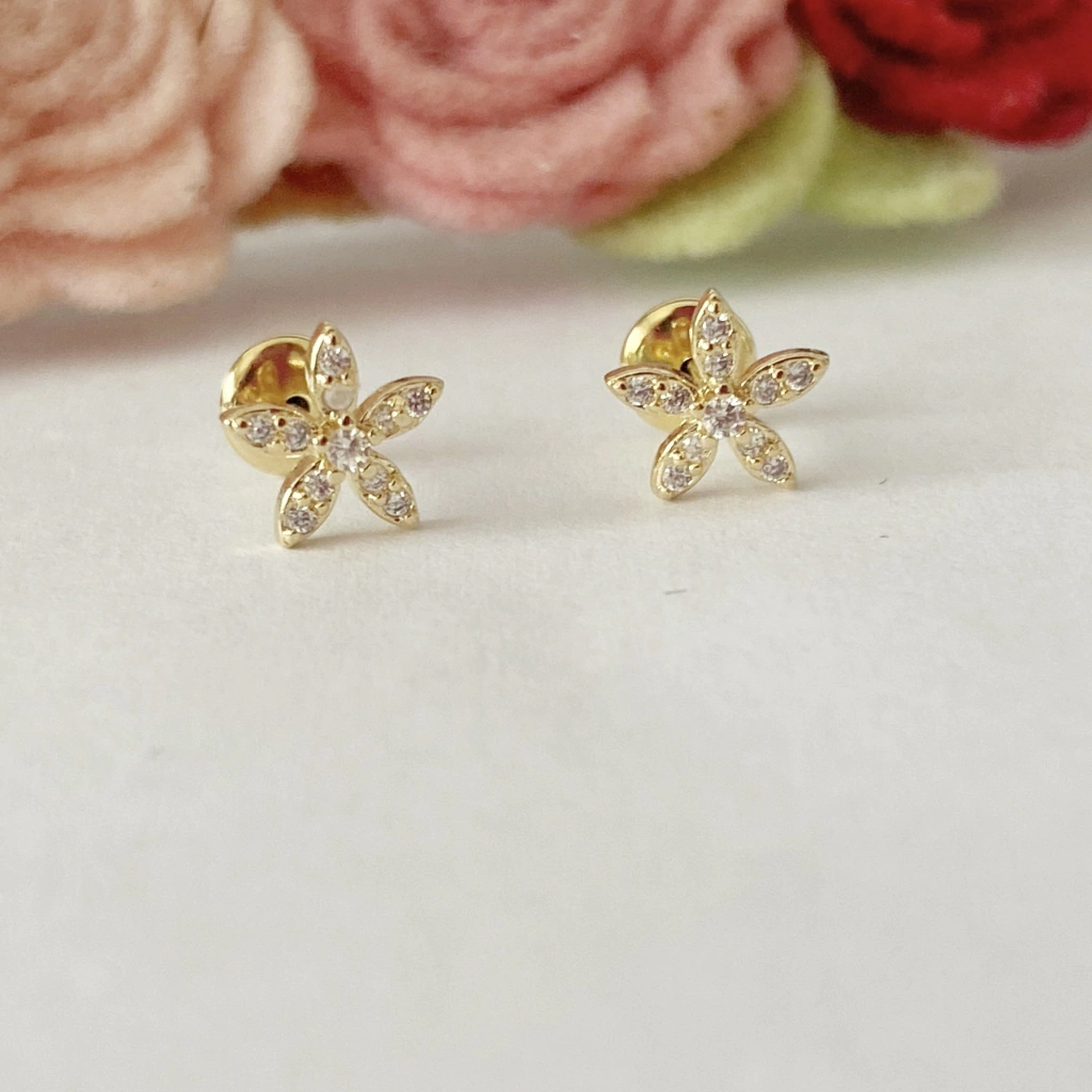 Brinco Infantil Flor Cravejados com Zircônia Banhado a Ouro 18k