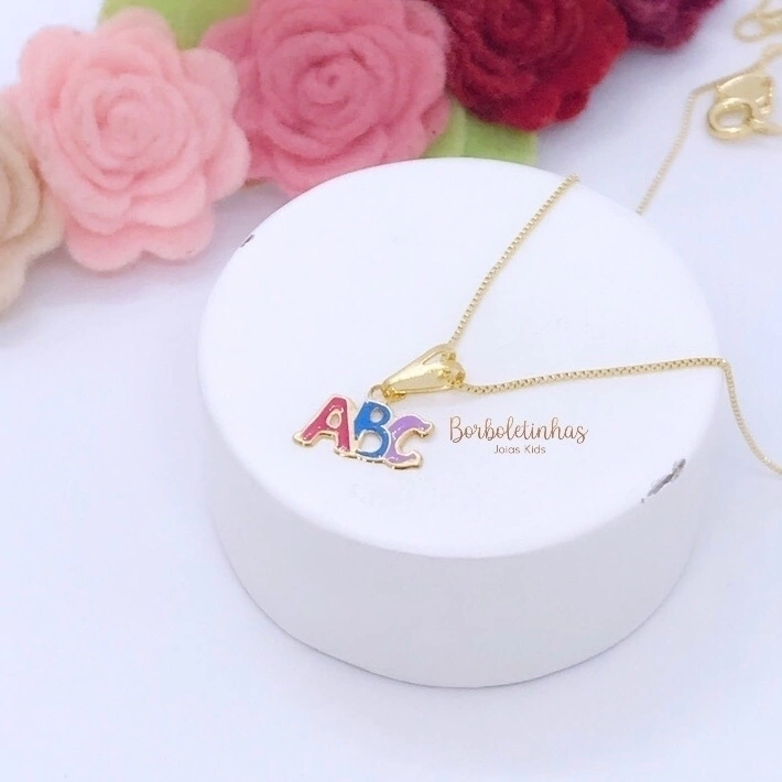 Este colarzinho delicado é perfeito para adicionar um toque especial ao visual da sua pequena. Com um pingente fofo em formato de ABC, ele é folheado a ouro e conta com um detalhe em resina que traz um charme extra.