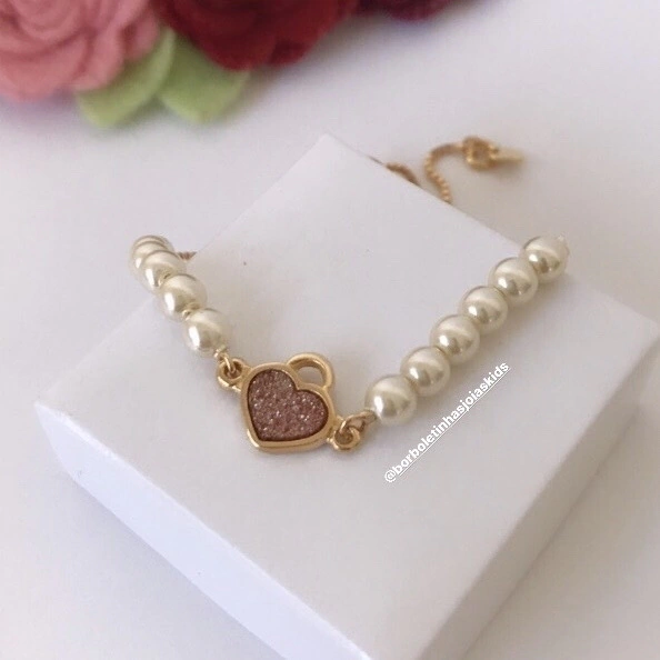 Encante-se com a Pulseira Infantil Coração, uma peça linda e delicada que irá deixar sua princesa ainda mais bela! Com um charmoso pingente de coração resinado à mão e detalhes em pérolas, esta pulseira é a escolha perfeita para adicionar um toque especial ao visual infantil.